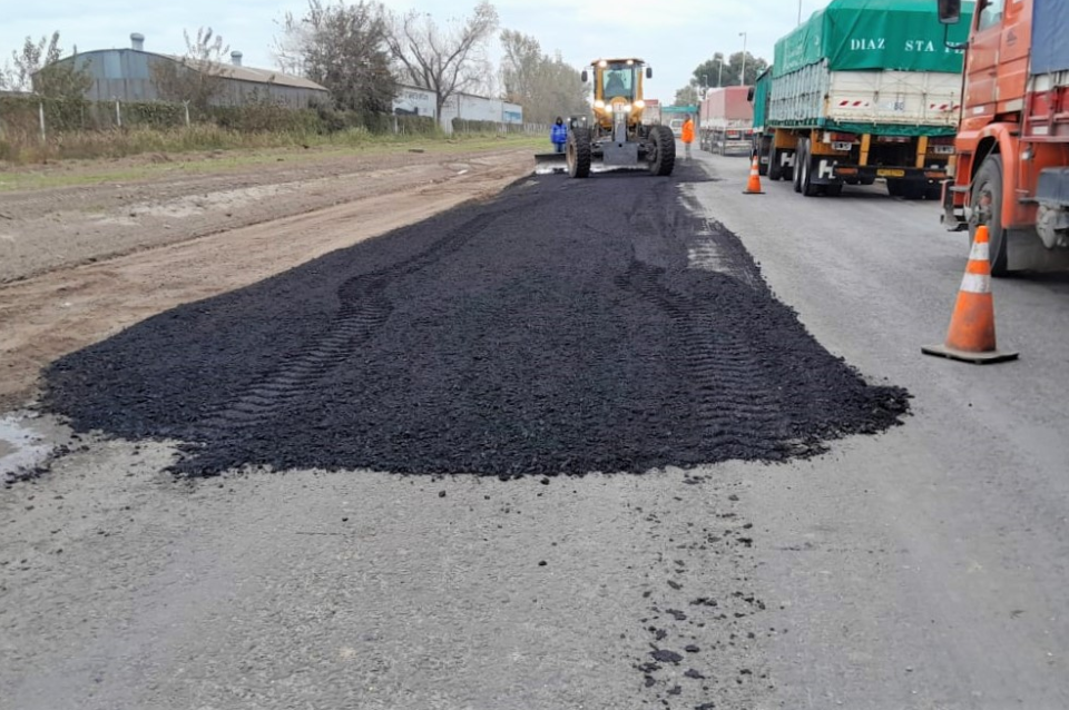 En otros tramos ubicados entre Castellanos y Rufino, actualmente se procede con el fresado de cinco centímetros de espesor con recambio de base para colocar una nueva carpeta de rodamiento construida con concreto asfáltico en caliente. De manera complementaria, se realiza el recalce y consolidación de banquinas. Los trabajos en marcha producen la reducción del carril intervenido, con paso alternado coordinado por banderilleros.