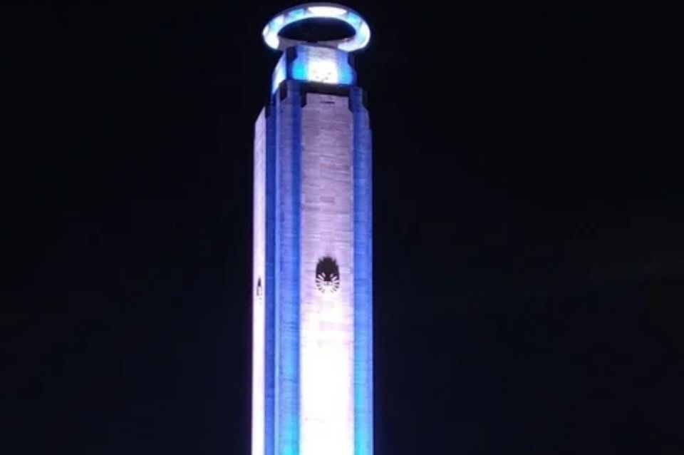 El Monumento Nacional a la Bandera en Rosario se iluminó con los colores celeste y blanco la noche del martes, acompañado por una aureola en lo alto de la torre. Esta sorprendente postal desató especulaciones en redes sociales, donde muchos se preguntaban si se trataba de un homenaje para Ángel Di María.