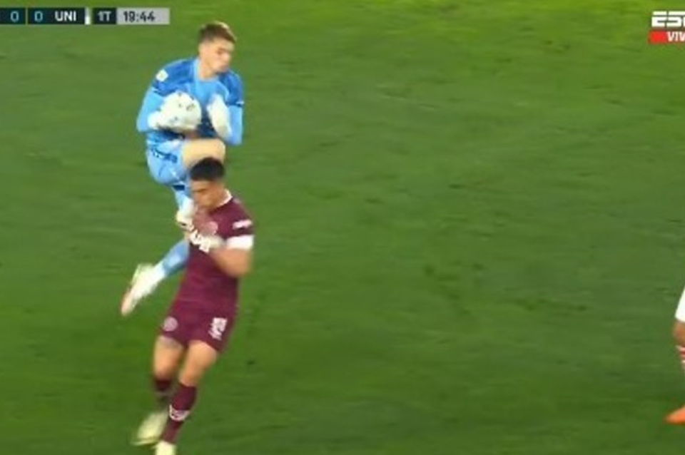 Una polémica acción se produjo este viernes en el Sur, donde Fernando Espinoza no dudó en cobrar un penal por un choque entre el arquero de Unión, Thiago Cardozo, y el mediocampista de Lanús, Favio Álvarez.