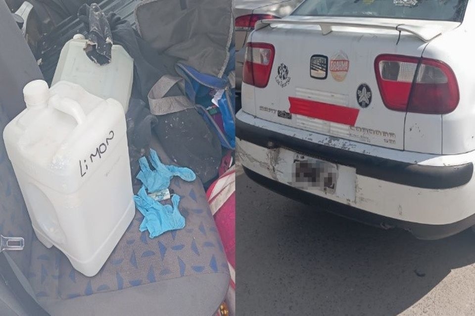 Con respecto a los bidones que estaban en el auto, el conductor argumentó que eran para aceite de su vehículo. En los asientos también se encontraron guantes de látex y un encendedor