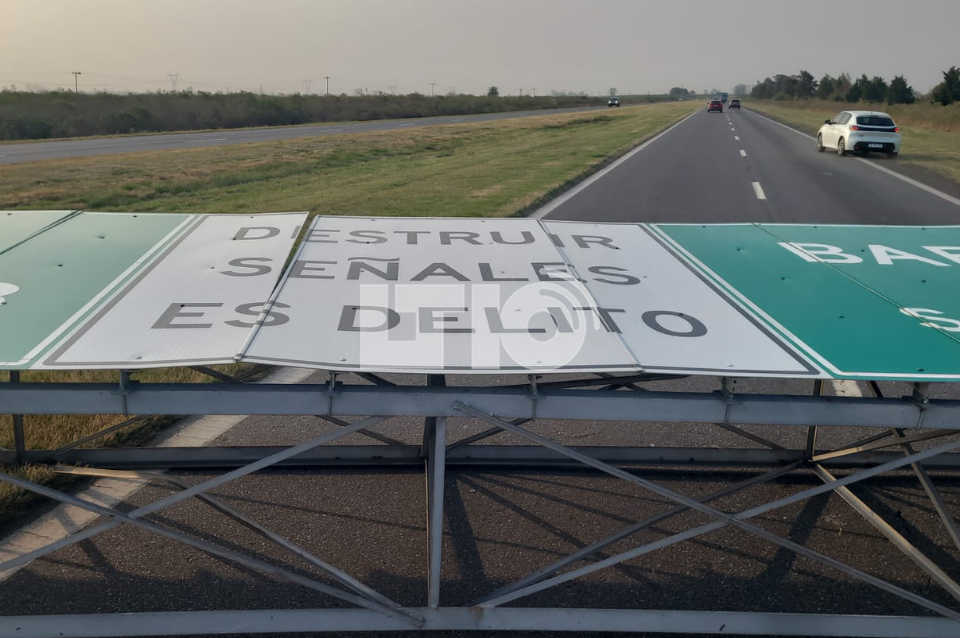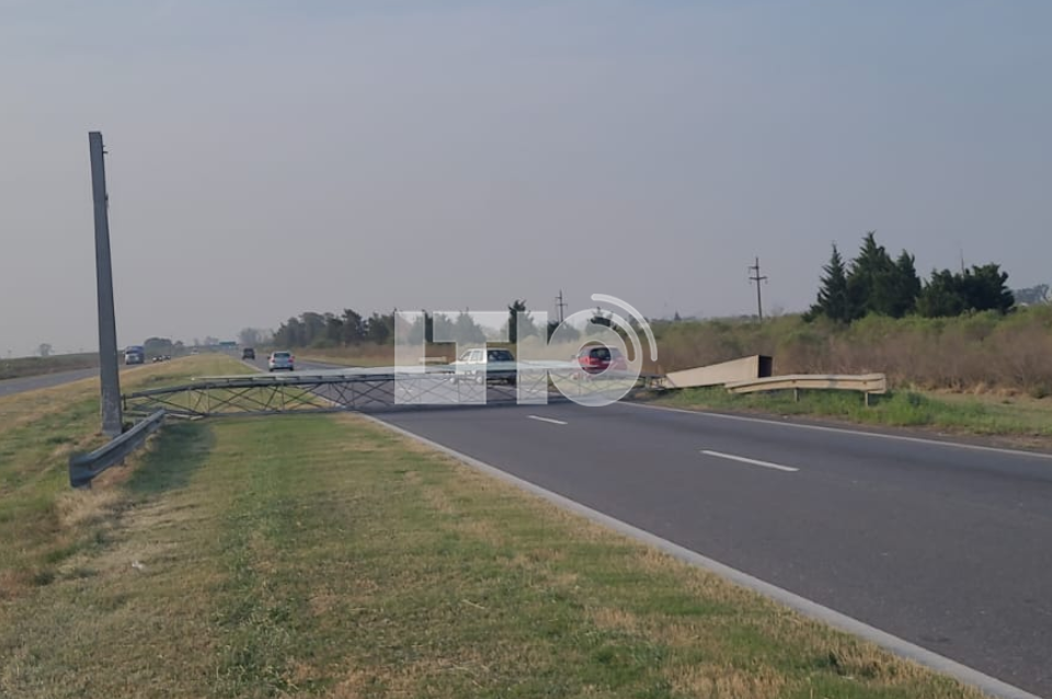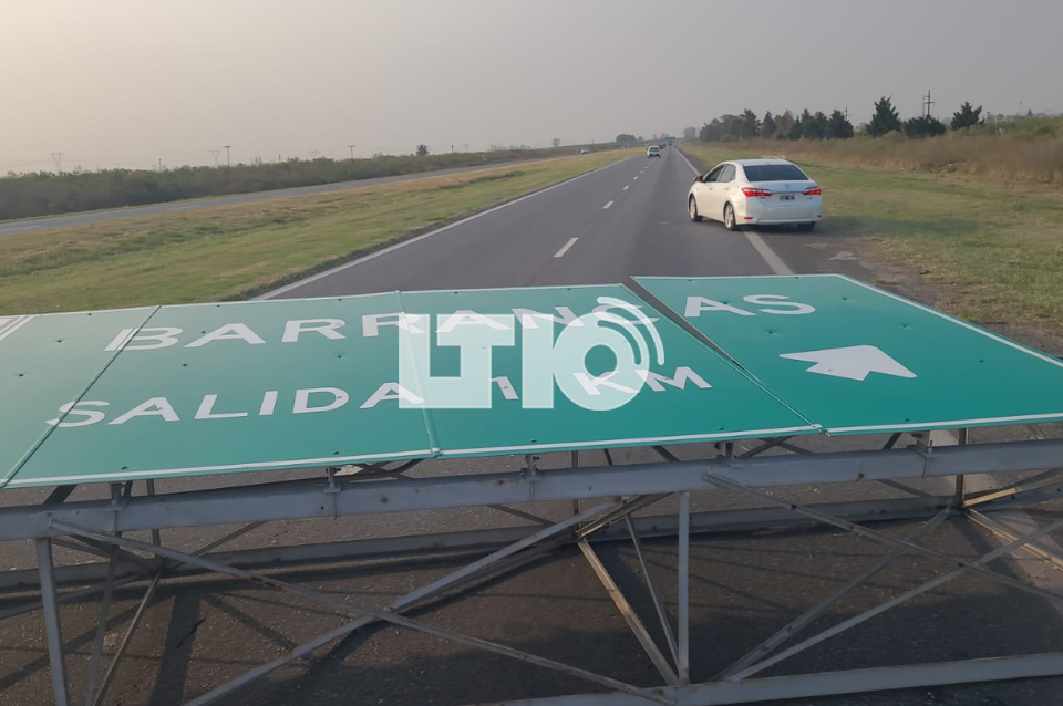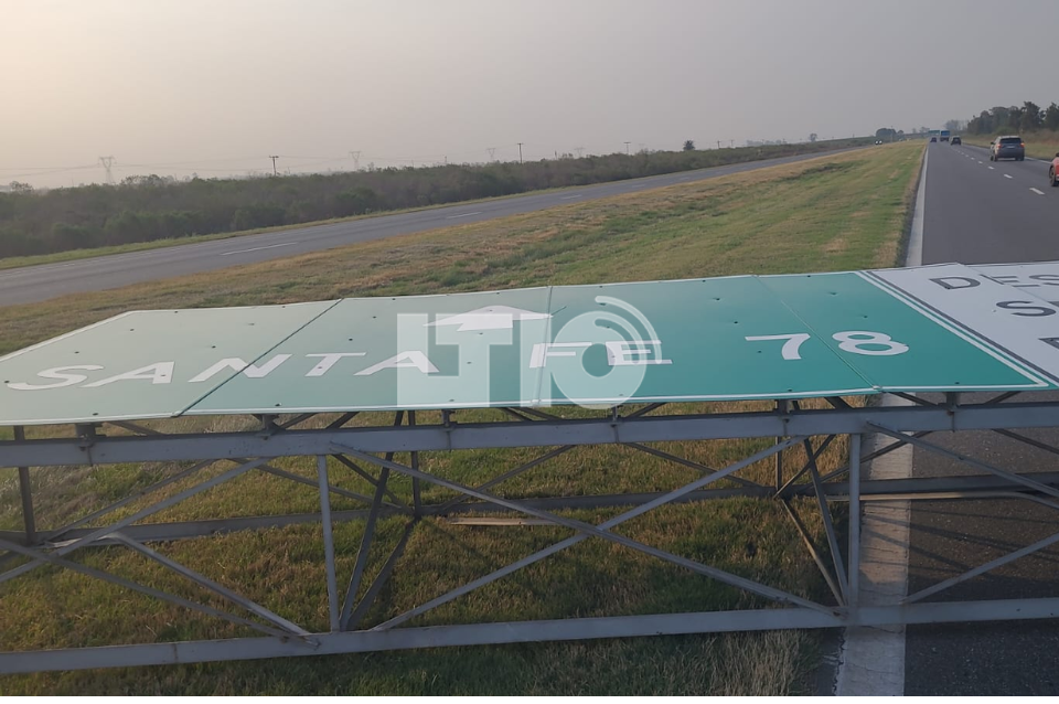 Cerca de las 17:30 de la tarde, el periodista Juan Trento iba por la autopista Santa Fe Rosario y se encuentra con que el cartel que señaliza la mitad del corredor vial, el kilómetro 78, se desplomó generando un caos entre los automovilistas que no sabían que hacer para seguir su camino sin provocar un accidente.