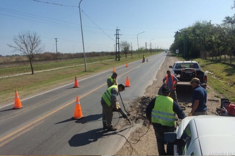 Finalmente, al sur de la capital provincial, otro equipo de trabajadores viales nacionales ejecuta intervenciones de seguridad sobre la calzada de RN 11 en la zona de Sauce Viejo. En este caso las tareas se enfocan en baches puntuales y deformaciones, con restricción de circulación sobre la mano intervenida y paso alternado ordenado por banderilleros.