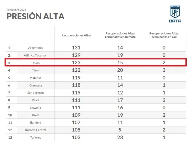 Choque de realidades diferentes, pero con un detalle que quizás pocos sabían en la previa: el Tate llega a este encuentro siendo uno de los mejores haciendo presión alta. En la última actualización de la Liga, ascendió al tercer lugar, con 123 recuperaciones, generando 15 remates y marcado dos goles. Delante están Argentinos y Atlético Tucumán, pero que no le sacaron réditos rompiendo la red adversaria.