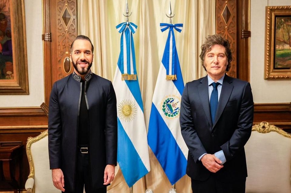 El presidente Javier Milei recibió esta tarde en Casa Rosada a su par de El Salvador, Nayib Bukele, con quien mantenía una audiencia para tratar la cooperación entre ambos países en temas como "energía, comercio y seguridad".
