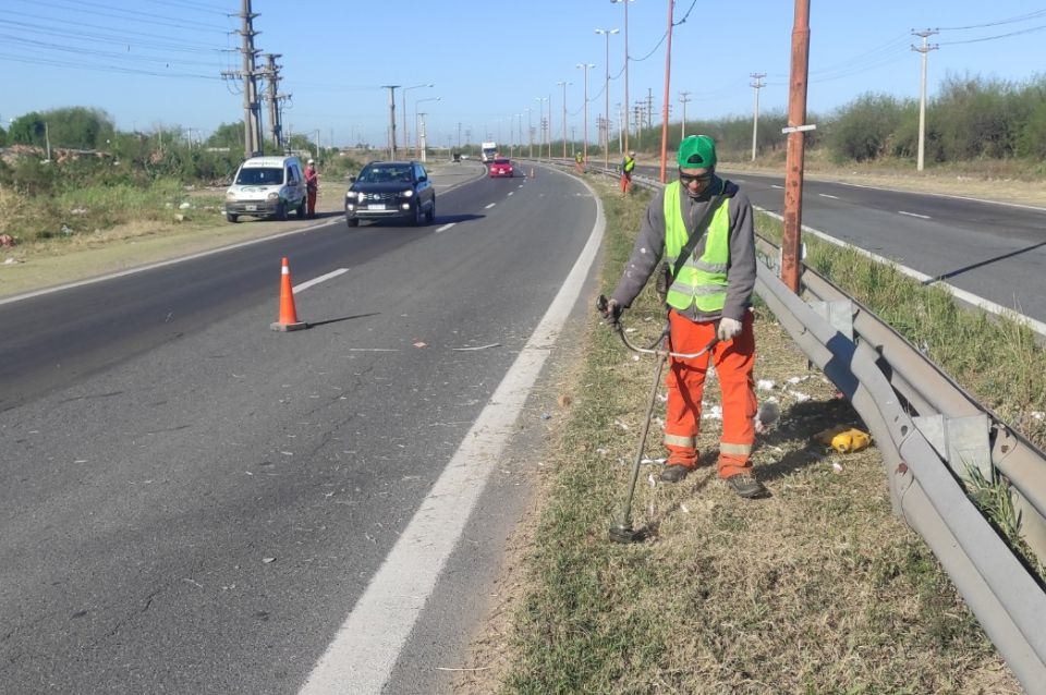 Por intermedio del 7º Distrito Santa Fe, Vialidad Nacional realiza el corte de pasto sobre la Circunvalación Oeste de Ruta Nacional 11 en la capital de la provincia.