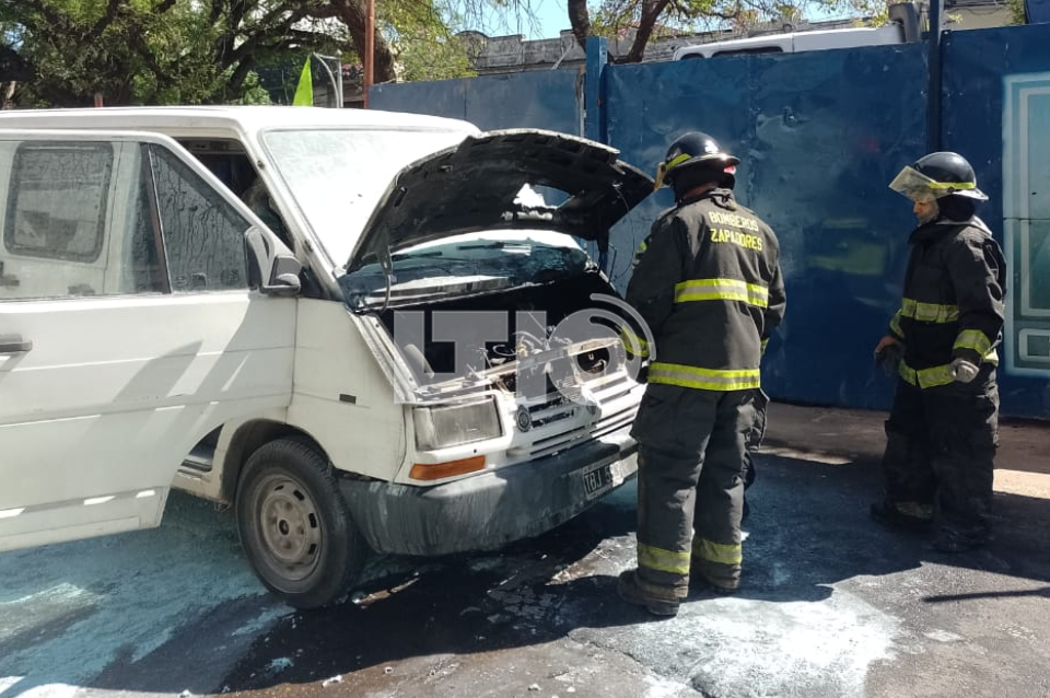 Según confirmó Dante, dueño del utilitario, se dirigía a un vacunatorio ubicado en la zona de calle Rivadavia, cuando el vehículo comenzó a prender fuego en su parte delantera y la policía que se encontraba por el lugar lo asistió con un matafuego por lo cual se controlaron las llamas antes de que el daño sea mayor.