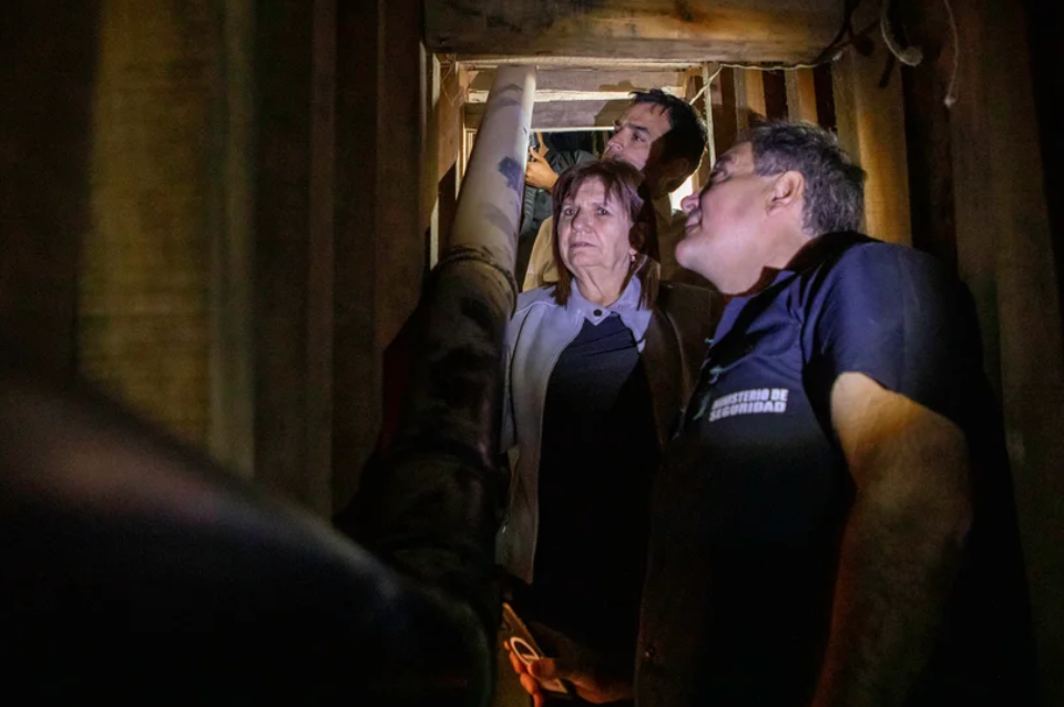 La ministra de Seguridad, Patricia Bullrich, recorrió este viernes el túnel que había sido cavado en San Isidro para robar una sede del Banco Macro, un hecho frustrado por el que ya hay cuatro detenidos, y remarcó que "el que las hace, las paga".