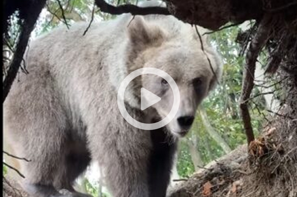 En los segundos siguientes, Janković graba cómo el oso, que vive en los bosques, entra en la cueva y comienza a olfatear, aunque no lo ataca.