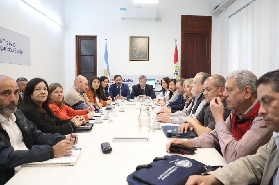Los ministros de Economía, Pablo Olivares, y de Trabajo, Empleo y Seguridad Social, Roald Báscolo, junto a la secretaria de Educación, Carolina Piedrabuena, encabezaron este este miércoles una nueva reunión paritaria con los representantes de Amsafe, Sadop, UDA y AMET.