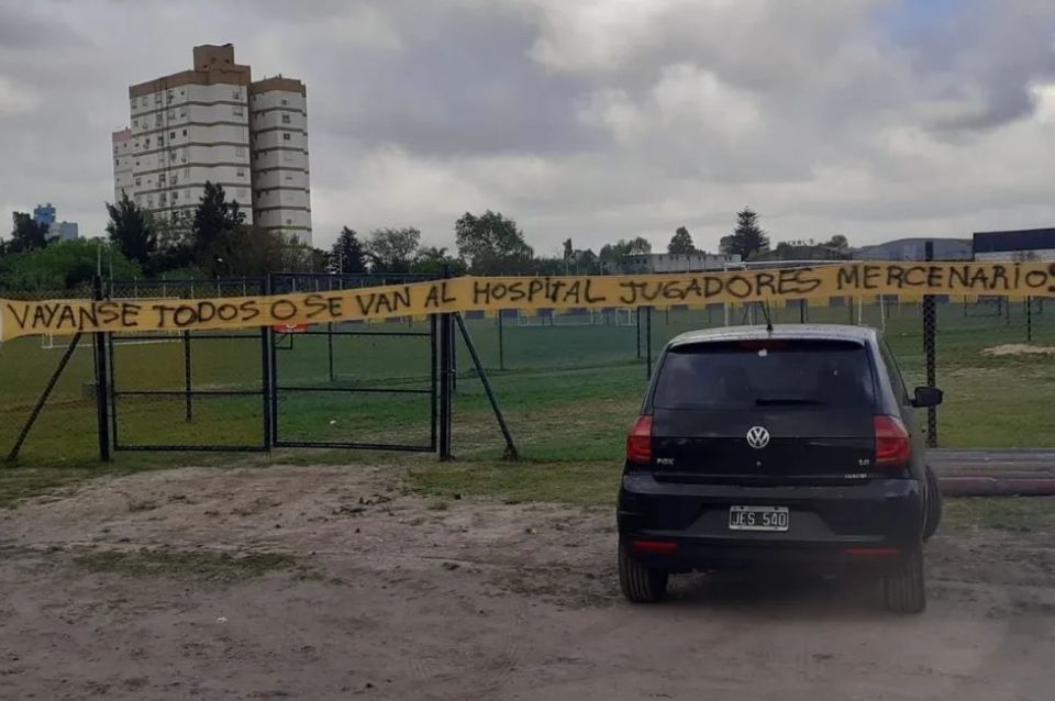 Luego de los dichos por el defensor Dylan Gissi, apareció un pasacalle en el predio del Bohemio