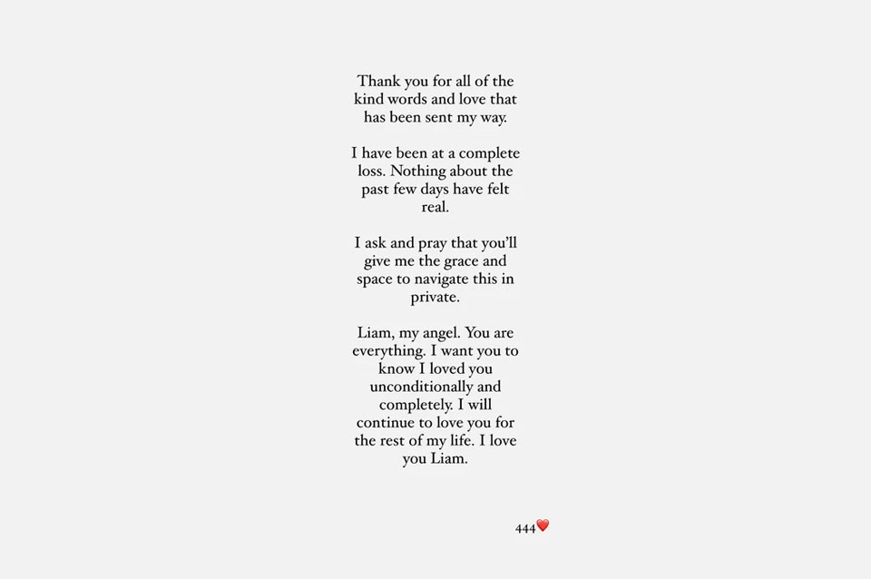 Asimismo, la joven se refirió a Payne y le habló directamente: “Te pido y rezo para que me des la gracia y el espacio para navegar esto en privado”.