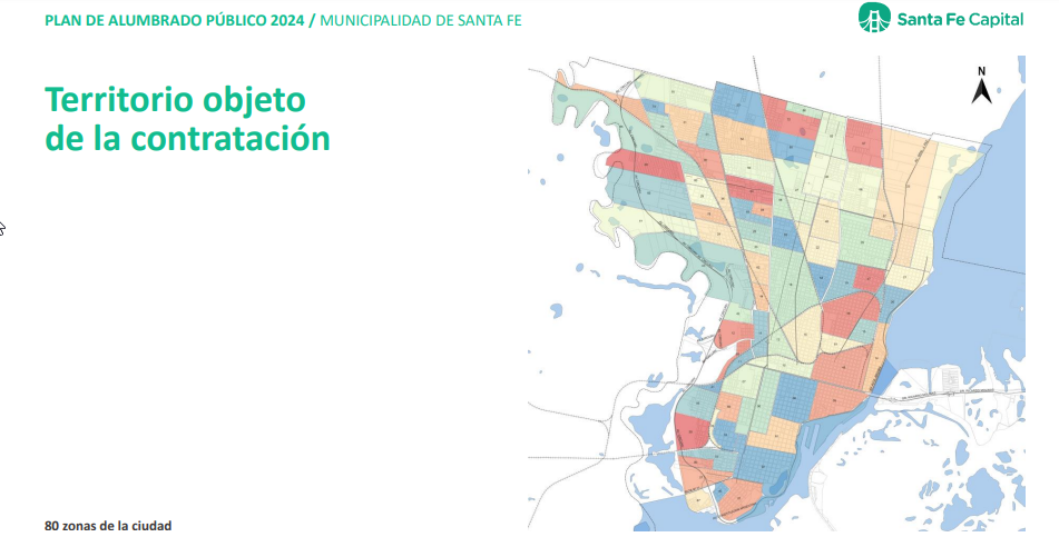La "Refuncionalización y Mantenimiento Integral del Alumbrado Público" en Santa Fe abarca dos zonas geográficas y tiene una duración de 60 meses, con posibilidad de prórroga por 24 meses.