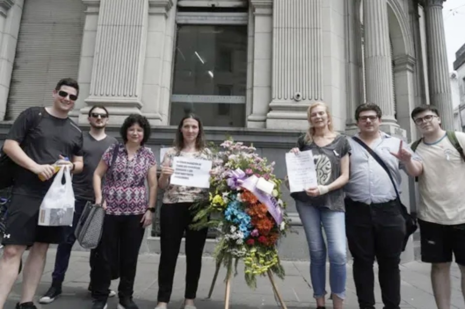 Según informaron medios rosarinos, los manifestantes intentaron depositar la ofrenda floral en el ingreso del organismo, pero el efectivo de la Policía Federal que custodiaba el lugar se los impidió, por lo que debieron conformarse con depositar la corona sobre un soporte en la peatonal San Martín.
