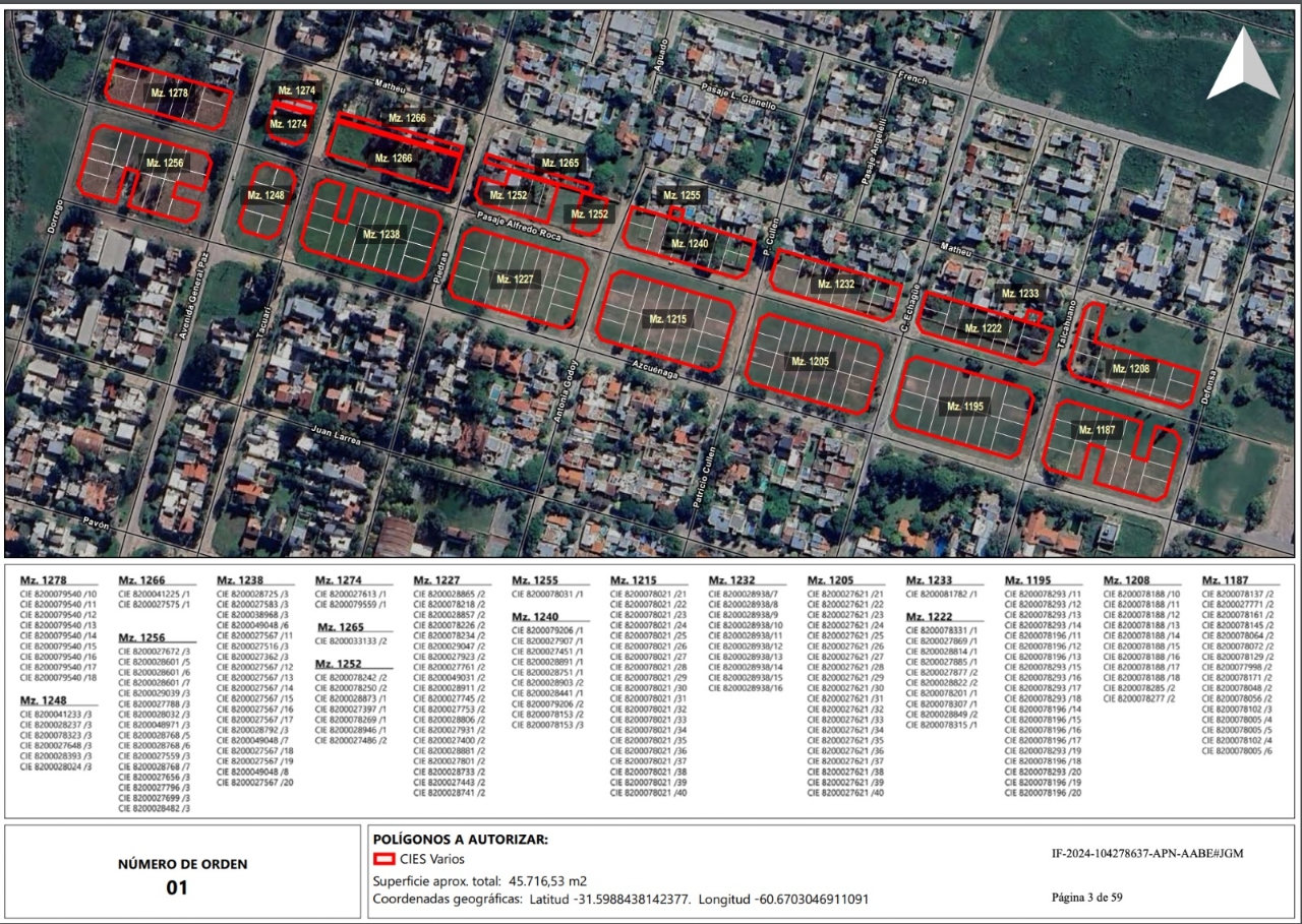 Se trata de las parcelas comprendidas entre las calles Matheu, Azcuenaga, Dorrego y Defensa, en el noreste santafesino.