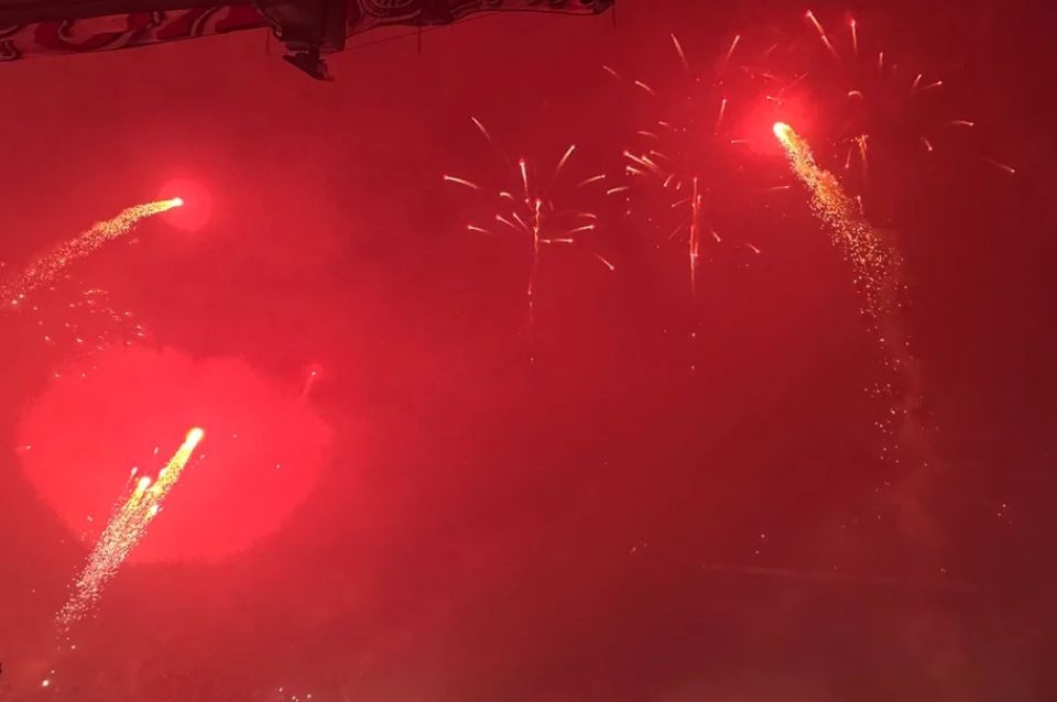 Los hinchas de River encendieron el estadio El Monumental en la salida de los jugadores para la vuelta de las semifinales de la Copa Libertadores ante Atlético Mineiro y “taparon” las tribunas con unaa increíble cantidad de bengalas y fuegos artificiales de color rojo y blanco.