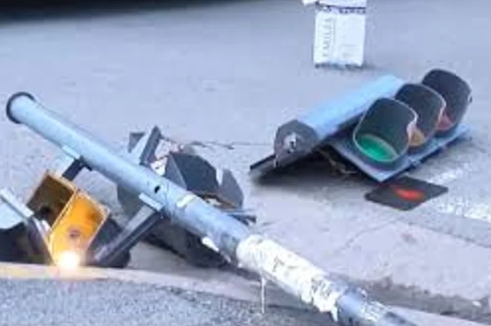 El hecho se produjo en la intersección de General Alvear y avenida Olmos, en pleno centro de la capital provincial, cuando un camión se despistó y pegó contra la columna que sostenía el semáforo.