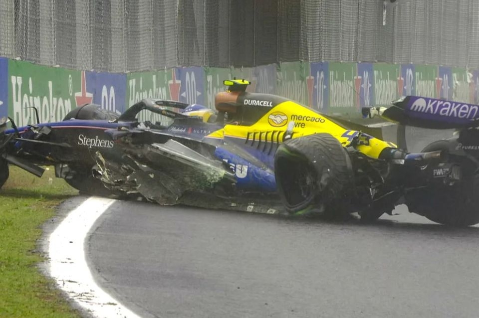 En su cuenta de X (ex Twitter), Reutemann compartió una imagen de su padre mientras disputaba el GP de Brasil de 1981 bajo una lluvia similar a la de este domingo con el siguiente mensaje: “Los buenos pilotos se ven bajo la lluvia”.