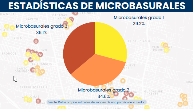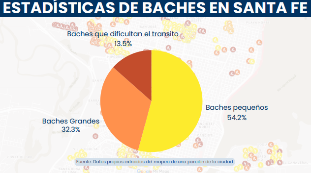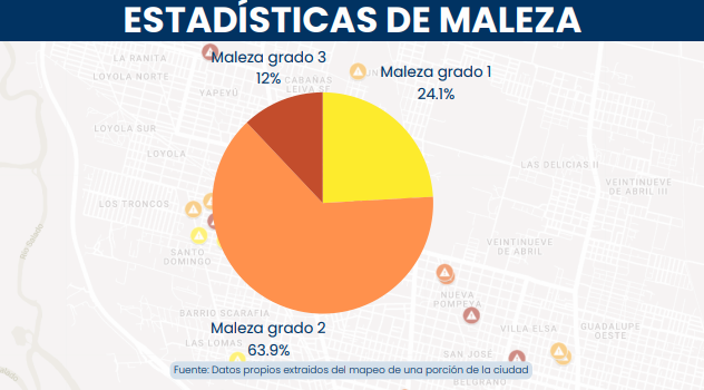 Del análisis del muestreo de la ciudad se desprende que en hay: 1747 baches, 332 microbasurales, 80% de las bocas de tormentas desniveladas, 249 espacios públicos sin desmalezar y 1152 luminarias rotas y faltantes.