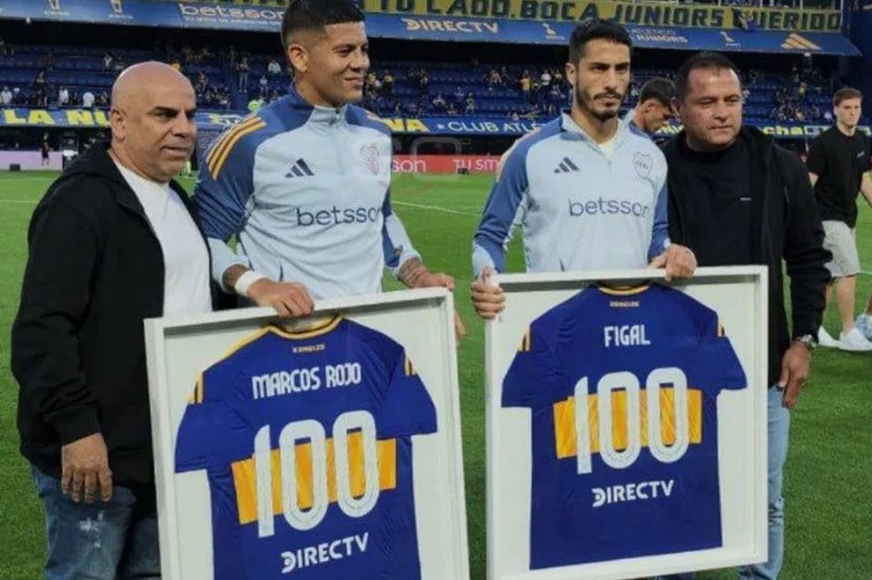 Los marcadores centrales de Boca Juniors Marcos Rojo y Nicolás Figal fueron homenajeados por la institución deportiva porque llegaron a disputar cien partidos con la camiseta “Azul y Amarilla”.