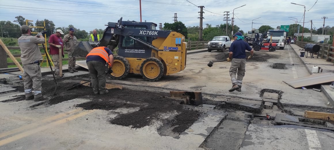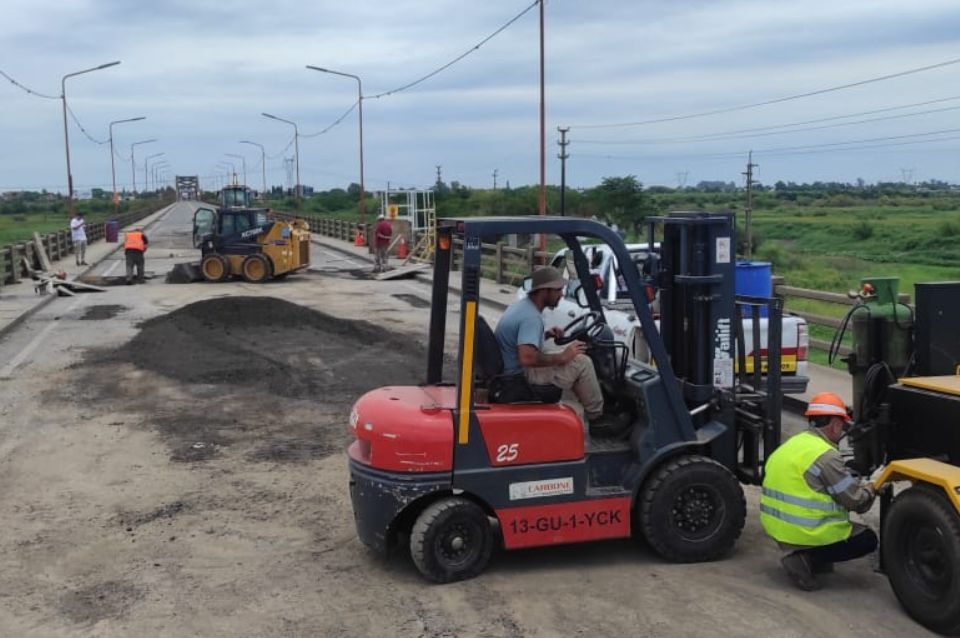 Vialidad Nacional continúa según lo previsto las tareas en el Puente Carretero para que el mismo sea rehabilitado este lunes.