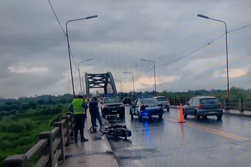 Con la calzada mojada provocada por la lluvia, un auto y una moto protagonizaron el primer siniestro. Sucedió a la altura del segundo arco en la mano que va de Santa Fe a Santo Tomé.