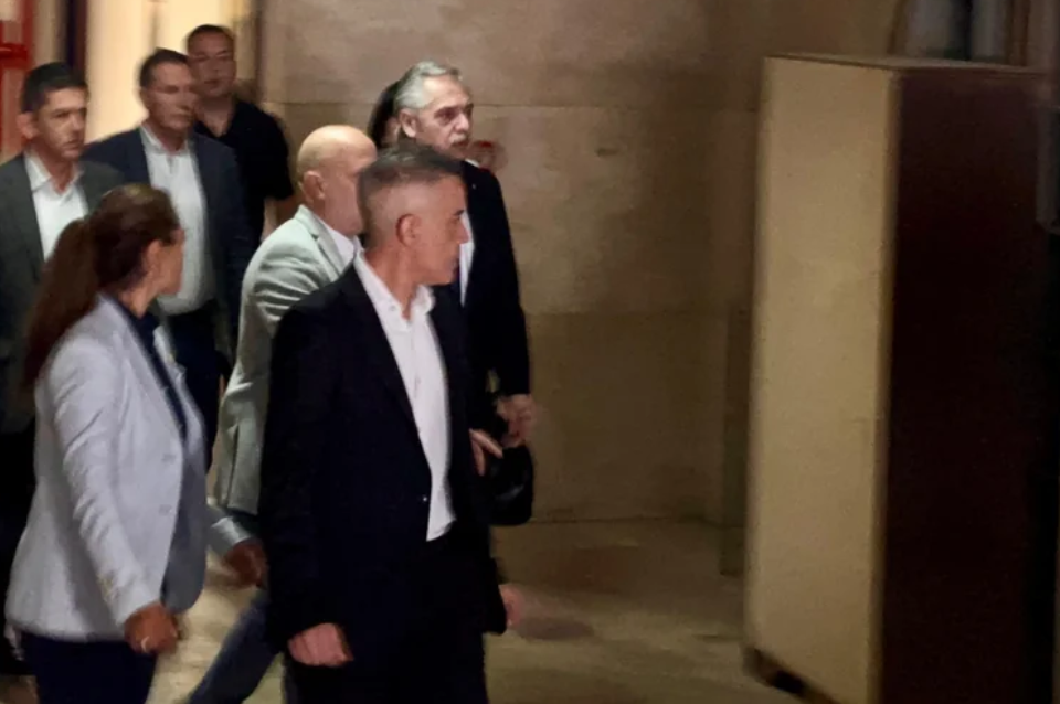 El ex presidente Alberto Fernández ingresó a la secretaria del juzgado federal 11 de los tribunales federales de Retiro, donde se cumplirá el trámite del juez federal Julián Ercolini y el fiscal Carlos Rívolo.