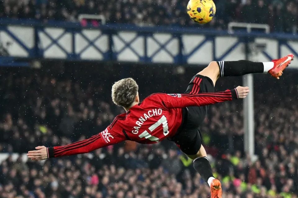 Luego de un centro desde la derecha del portugués Diogo Dalot, a los dos minutos del primer tiempo, Garnacho realizó una volea acrobática para adelantar rápidamente a Los Diablo Rojos en el marcador.
