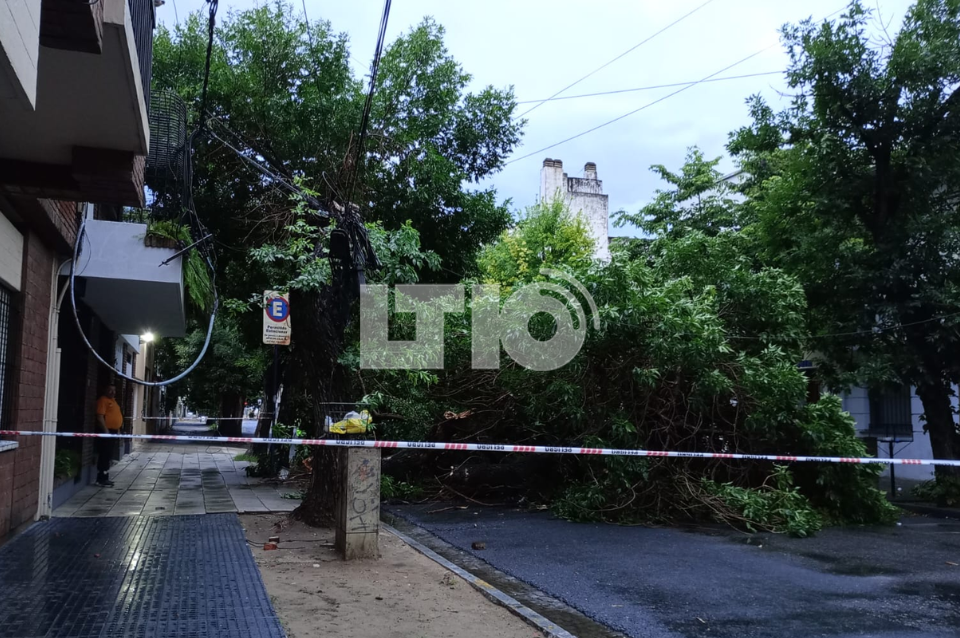 También está interrumpido parcialmente el tránsito por la presencia de ramas en Corrientes al 3200 y en Gral López al 3.100, por un cable cortado sobre el asfalto.