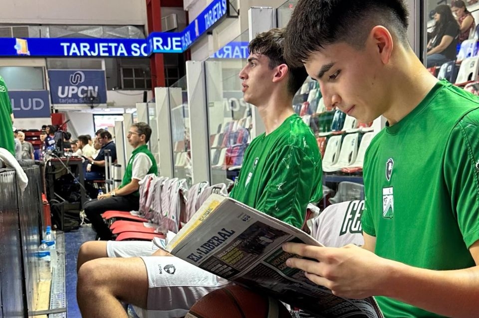 Tobías Tamagusuku, hijo de Germán, y Román Moravansky, sobrino de Gabriel, se cambiaron con el plantel de la Liga Nacional y rememoraron una antigua fotografía que le sacaron a sus familiares cuando jugaban en el Verdolaga.