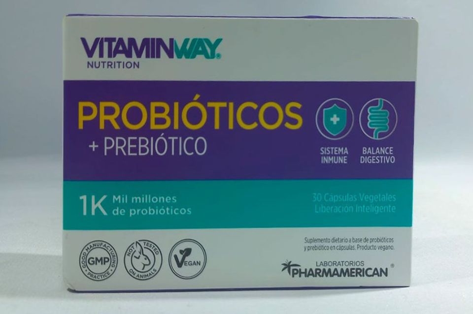 A continuación, se detallan las especificaciones del suplemento dietario a base de probióticos y prebióticos en cápsulas marca Vitaminway: