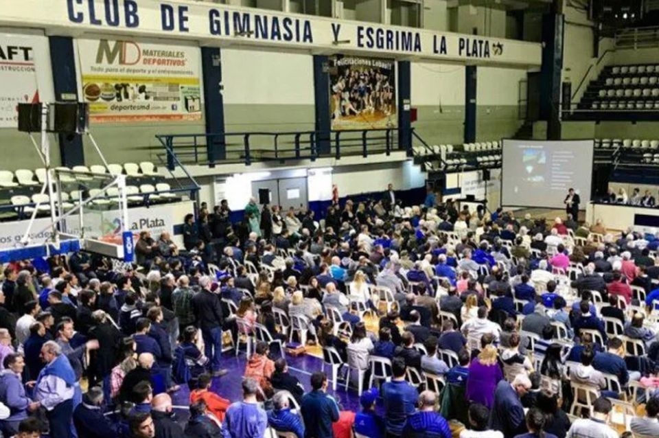 Uno de los cánticos que se hicieron presentes en el Polideportivo de Gimnasia y Esgrima de La Plata fueron “que se vayan todos”, y resonó en varias oportunidades de la Asamblea de Socios.