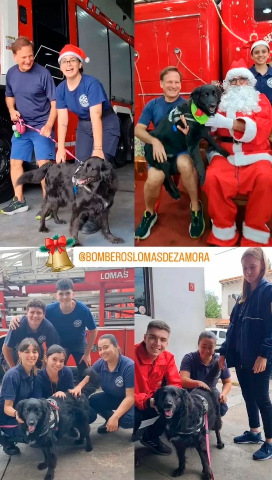 Además, Papá Noel se sacó fotos con los vecinos que se acercaron y hasta con Bambi, una perrita influencer de Lomas de Zamora que fue rescatada de un riachuelo.