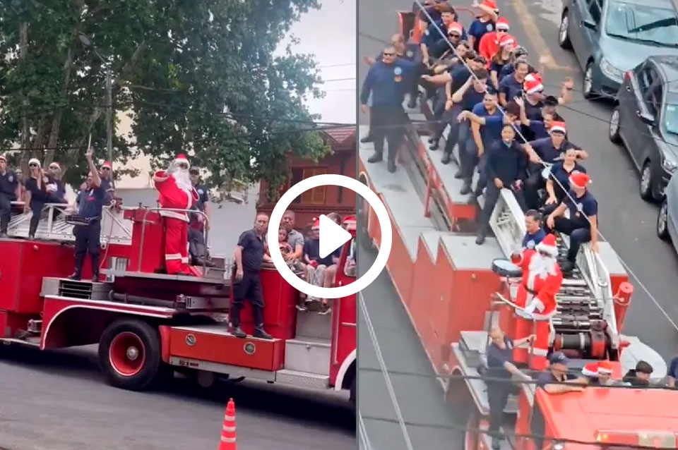 Papá Noel se subió al camión de los Bomberos Voluntarios de Lomas de Zamora y revolucionó las calles en un clásico de Navidad.