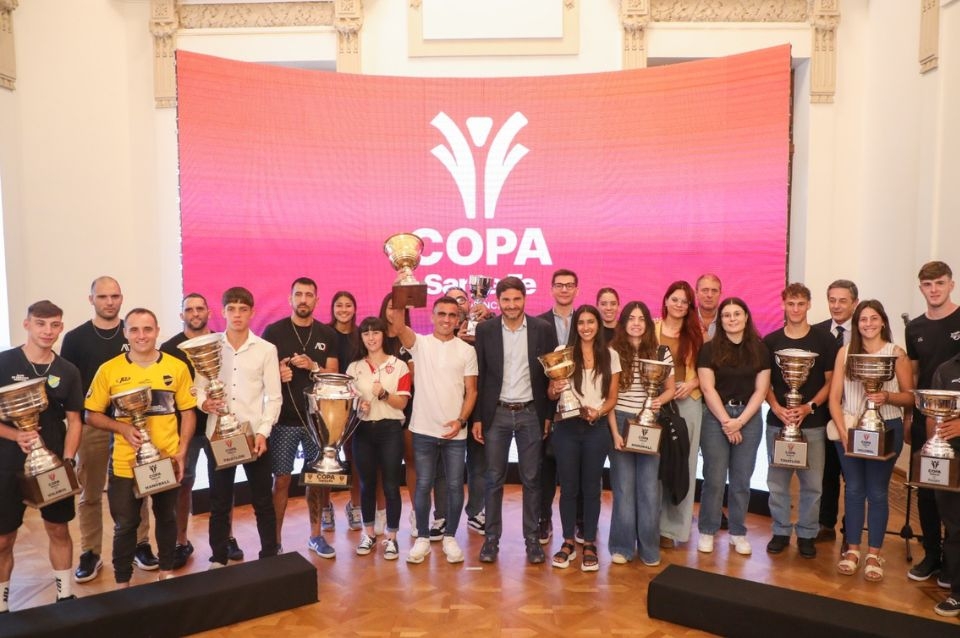 El gobernador Maximiliano Pullaro encabezó este viernes el balance de la Copa Santa Fe, iniciativa del Gobierno de la Provincia que en su edición 2024 convocó a más de 8.500 deportistas santafesinos que compitieron en 7 disciplinas (fútbol, voley, hockey, rugby, handball, maratón y triatlón), tanto femeninas como masculinas, generando instancias de participación de más de 150 instituciones de más de 50 localidades, creando lazos e inclusión social.