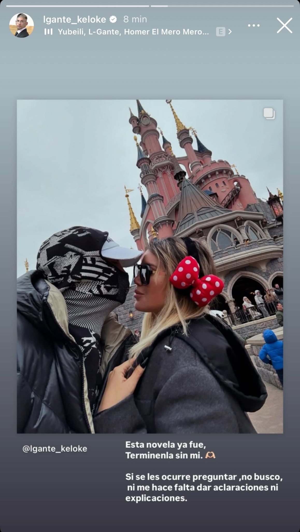 A diferencia de Wanda Nara, L-Gante optó por repostear una postal de rostro completo con quien fuera su novia. La imagen data del viaje que hicieron juntos a Disney, donde se encontraban muy feliz después de haber blanqueado su relación.