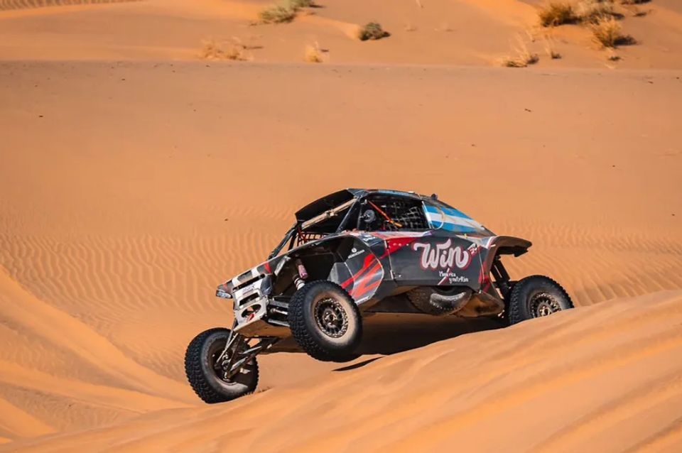 Cavigliasso, que tiene como copiloto a su esposa, Valentina Pertegarini, completó los 415 kilómetros cronometrados entre Al Henakiyah y Alula en 5H, 7´ y 43”, tres minutos menos que su escolta, el estadounidense Corbin Leaverton (Red Bull off-road jr team).