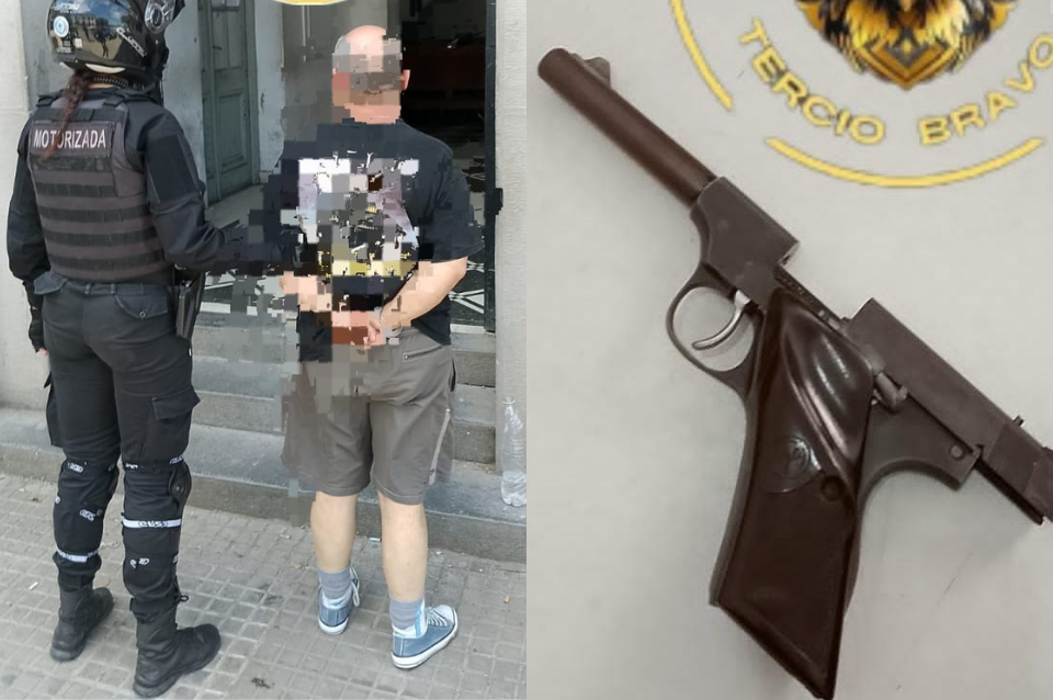 Efectivos de la Brigada Motorizada, alertados por el 911, iniciaron un operativo en la zona y localizaron al sospechoso a bordo de un utilitario Peugeot Partner y, luego de revisarlo, encontraron una pistola calibre 22 marca T.A.L.A., por lo que fue detenido en el acto.