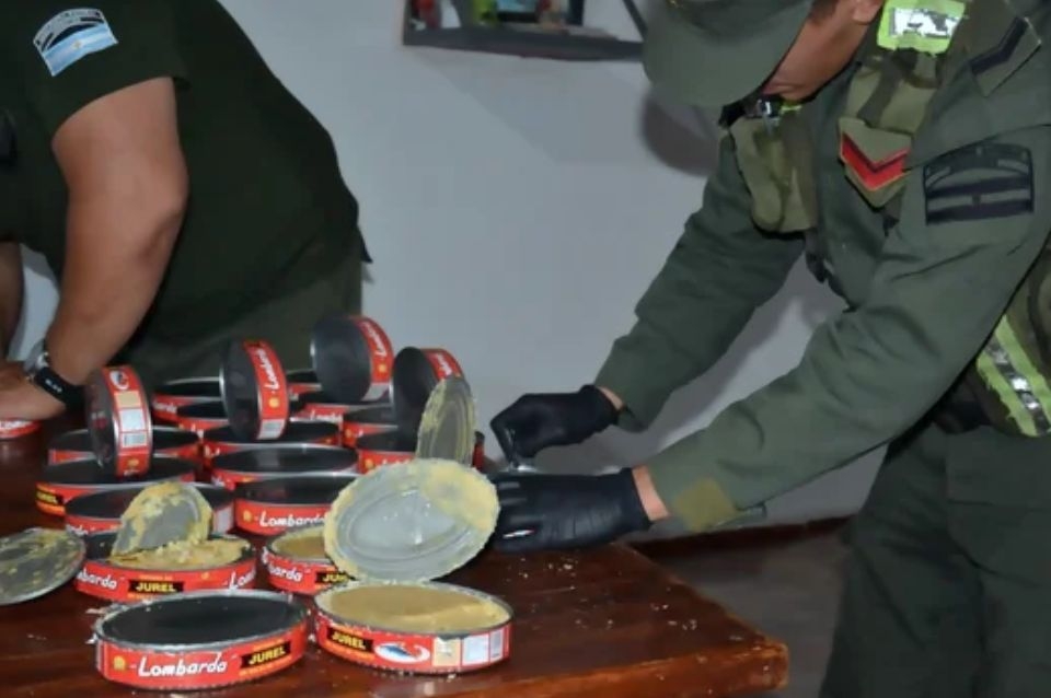 Efectivos de Gendarmería Nacional detuvieron a cinco personas que intentaron trasladar pasta base de cocaína camuflada en latas de jurel cuando se trasladaban en micro por Santiago del Estero.