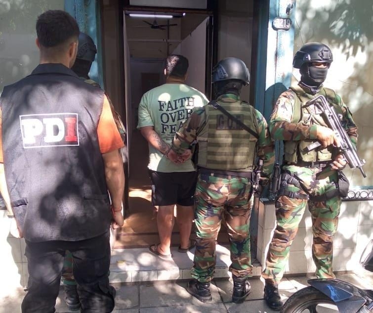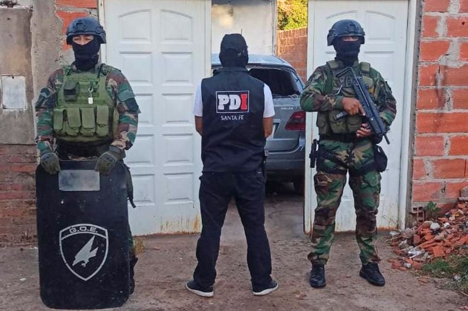 Tras realizar tareas investigativas, incluyendo entrevistas con testigos, análisis de filmaciones y oficios a entidades bancarias, la PDI llevó adelante allanamientos en un domicilio de calle Menchaca al 9700, en barrio La Ranita, y otro en Santa Cruz al 6500, en barrio Yapeyú. Como resultado, se detuvo a D. E. A. y a E. J. A. y se secuestró una motocicleta Yamaha modelo YBR 125cc, dos cheques, un recibo a nombre de la concesionaria, un casco e indumentaria de interés para la causa.