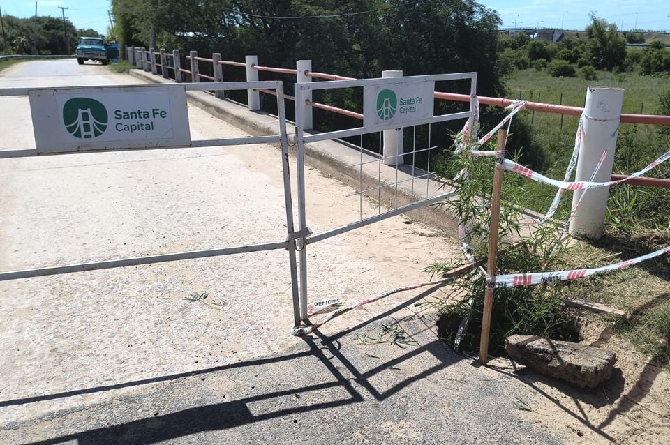 Mientras terminan los trabajos que estaba realizando la municipalidad en el puente de Colastiné Sur por el hundimiento que había en la calzada se produjo un nuevo socavón, esta vez del lado izquierdo.