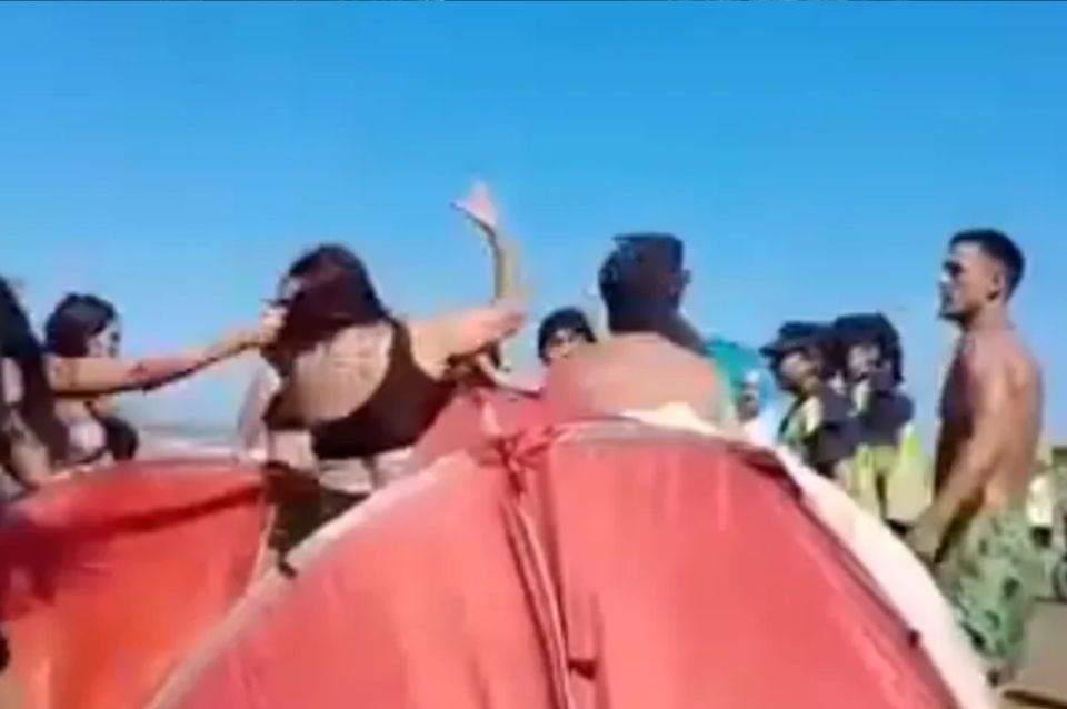 En el material audiovisual, grabado por un testigo de la pelea, se muestra cómo una discusión dentro de la playa escaló hasta convertirse en un enfrentamiento físico.