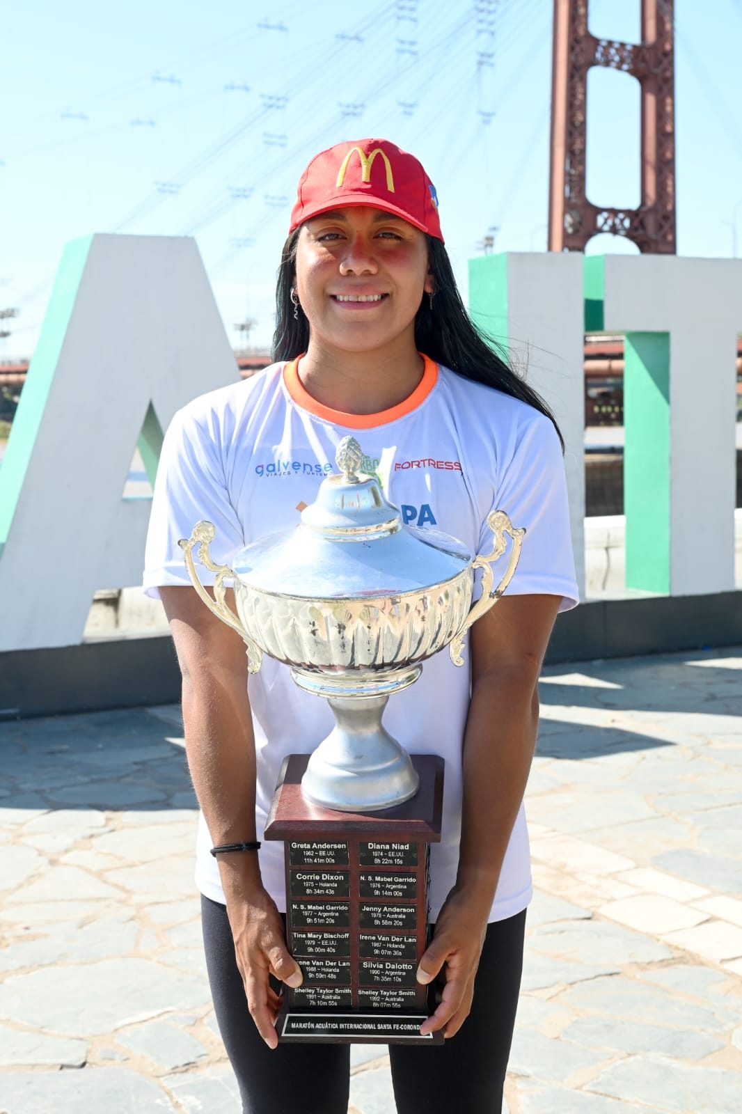 La organización de la maratón estuvo todo el tiempo pendiente de su estado de salud, y es por eso que, luego de ser dada de alta, la campeona merecía estar con la copa que con tanta justicia ganó.