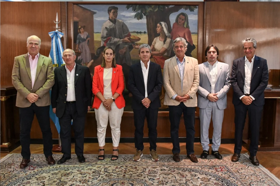 En un encuentro clave para el futuro del campo, el ministro de Economía, Luis Caputo, recibió al presidente de la Sociedad Rural Argentina (SRA), Nicolás Pino; al titular de Confederaciones Rurales Argentinas (CRA), Carlos Castagnani; a la presidenta de Federación Agraria Argentina (FAA), Andrea Sarnari; y al presidente de Coninagro, Lucas Magnano.