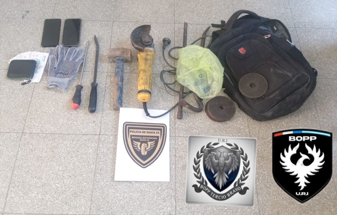 A los mismos se les secuestraron barretas, amoladora, martillo, guantes y discos de corte, que utilizaron para intentar forzar la entrada.