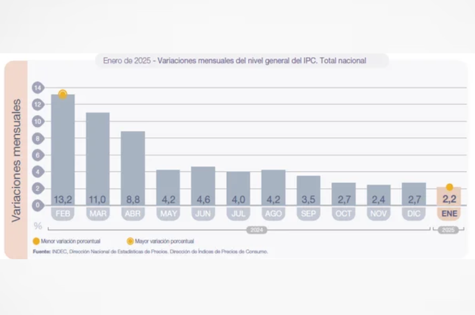 La inflación se desaceleró al 2,2% en enero, el nivel más bajo en casi cinco años, y acumula un 84,5% en doce meses, por lo que logra perforar los tres digitos.