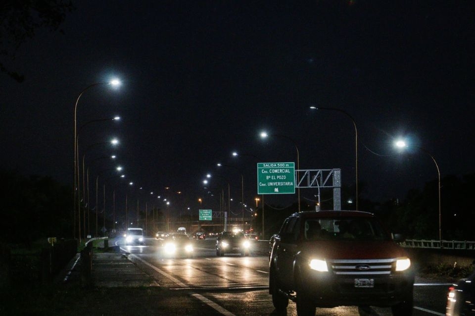 Con el objetivo de poner en óptimas condiciones uno de los corredores viales más importantes de la ciudad, la Municipalidad pone en marcha la segunda etapa de los trabajos de reposición y reparación de artefactos de iluminación en el tramo comprendido entre el puente que comunica barrio El Pozo con el hipermercado, hasta el rulo que comunica la RN 168 con el corredor vial de la RP 1.