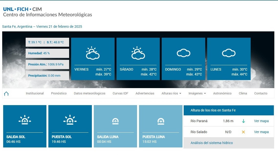 Se viven horas infernales en la ciudad de Santa Fe: en la tarde de este viernes la sensación térmica alcanzó los 48,8°, según indicó el Centro de Informaciones Meteorológicas de la FICH (UNL).