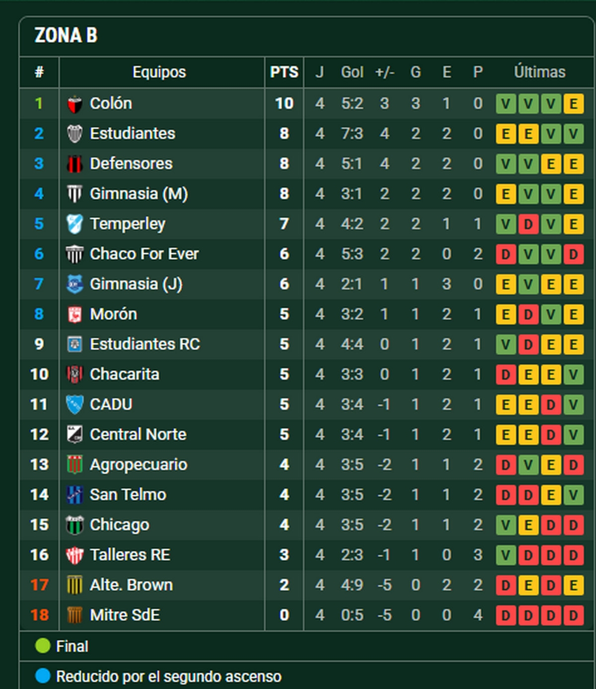 Llegó luego el suspenso con el gol en contra de Facundo Sánchez, pero Colón con un jugador más en cancha se encargó de atesorar un triunfo que lo coloca en lo más alto de la tabla, gracias al empate entre Gimnasia de Mendoza y Estudiantes de Buenos Aires, quienes llegaron también a la cuarta fecha como líderes de la Zona B..