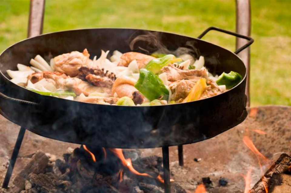 El pollo al disco es sinónimo de reuniones al aire libre y sabores intensos. Cocido a fuego lento, absorbe el ahumado justo y se mezcla con verduras y especias que realzan cada bocado. Un clásico que nunca falla en encuentros familiares o con amigos.