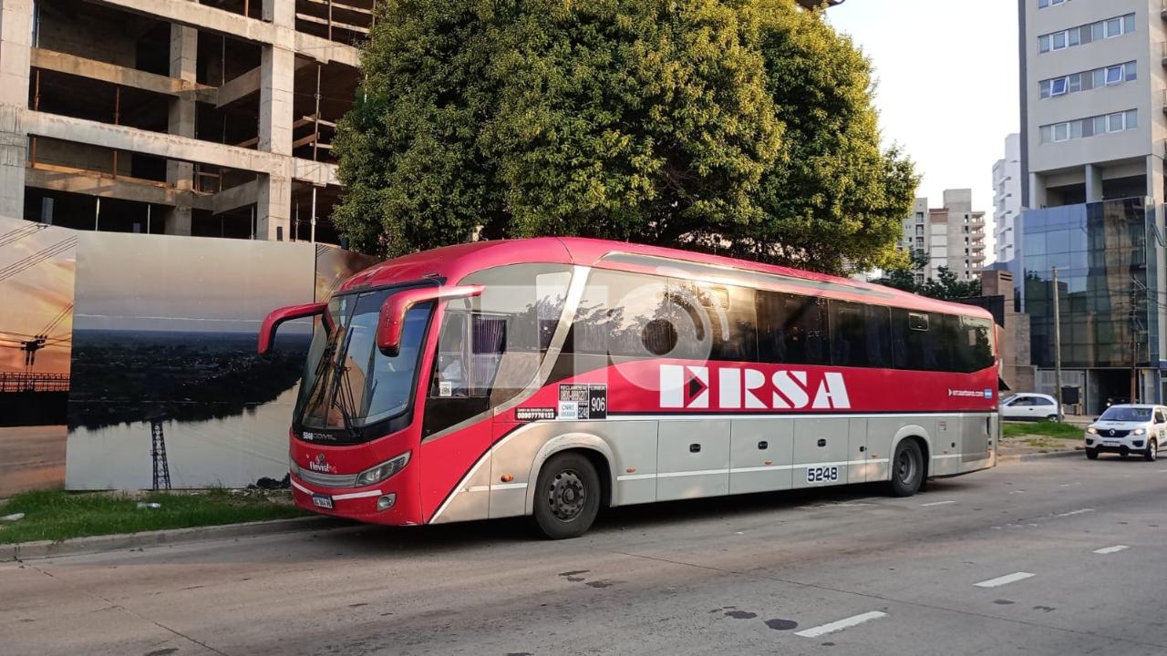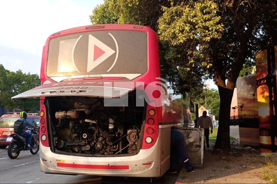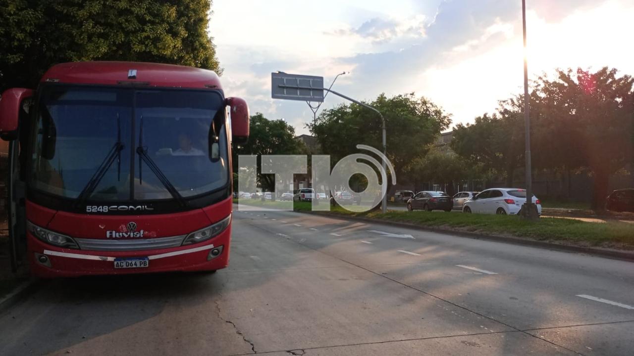 Un colectivo de la Línea Fluviales, perteneciente a la empresa ERSA se encuentra detenido en la bajada del Puente Oroño en el acceso a Avenida Alem.